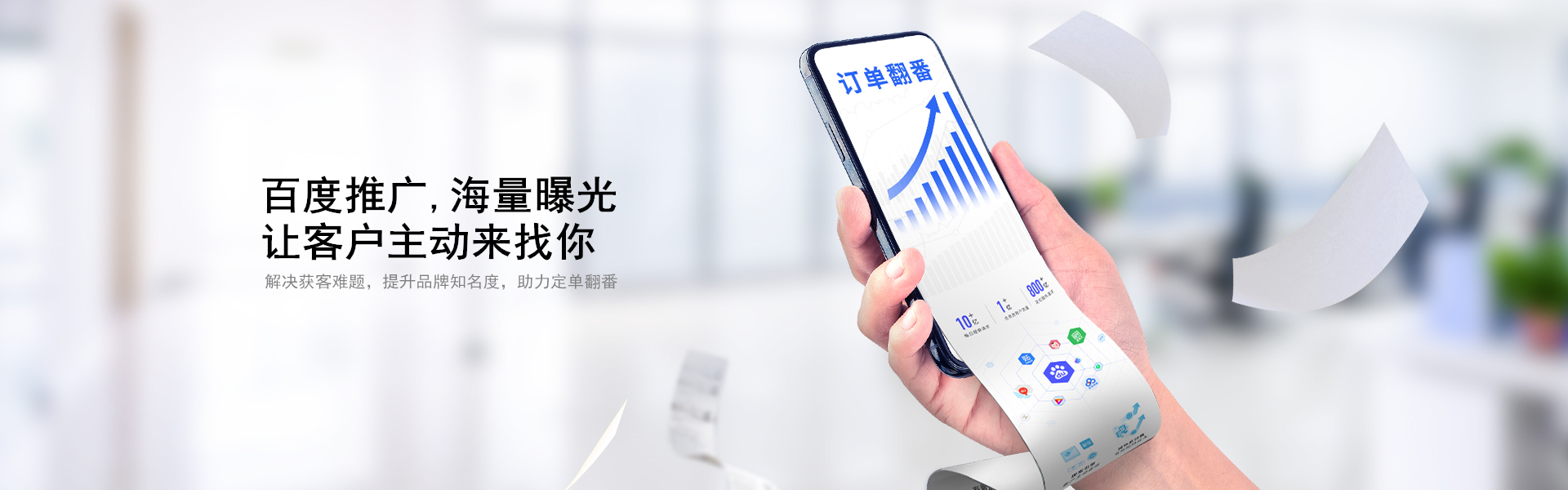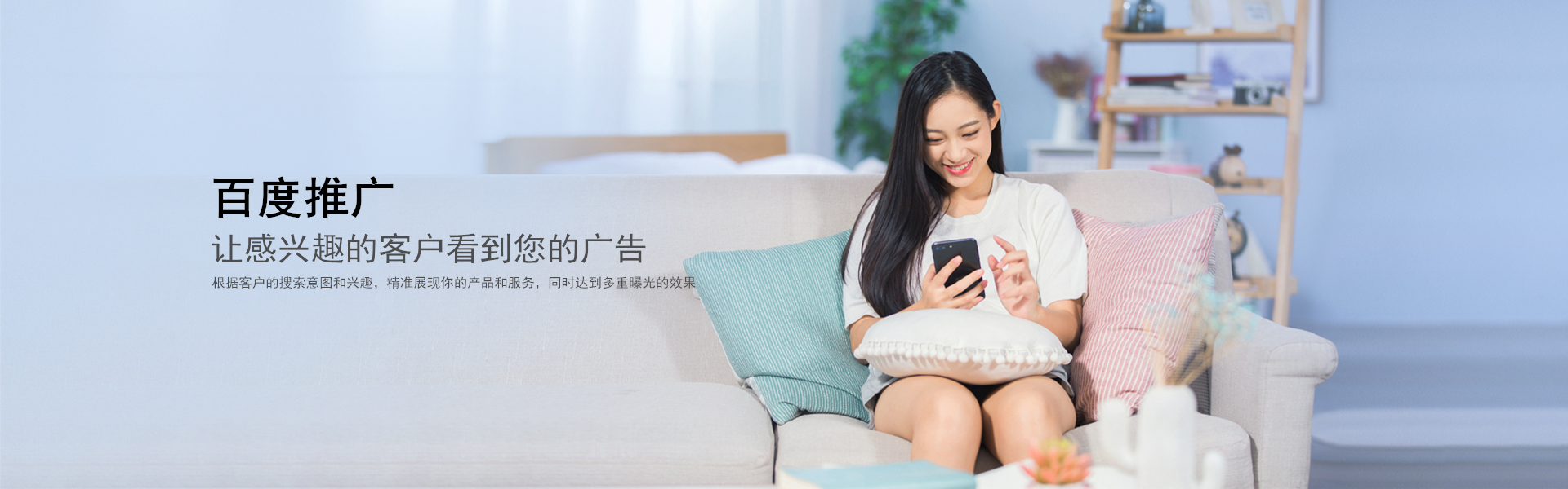 客户主动搜索关键词时,能立即看到您的产品及服务,主动寻求合作。搜索推广是基于中文搜索引擎百度搜索,在搜索结果显著的位置优先展示您的推广信息,只有客户点击广告之后,您才需要付费。