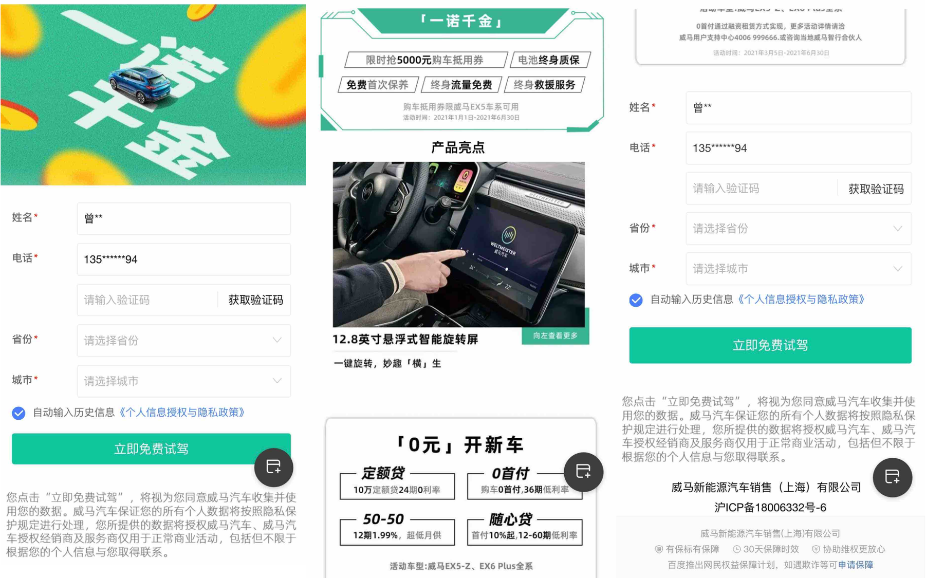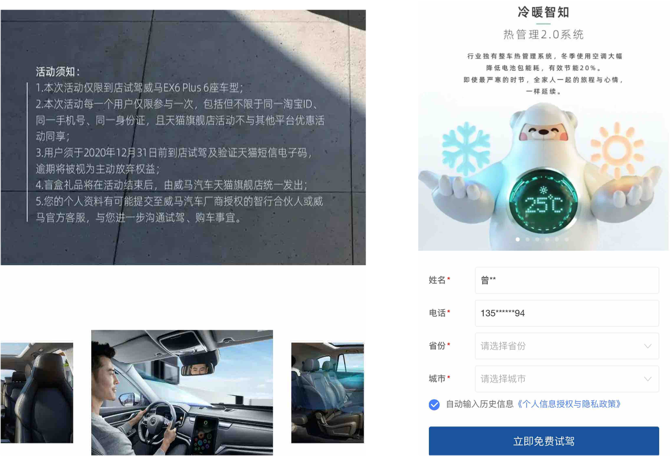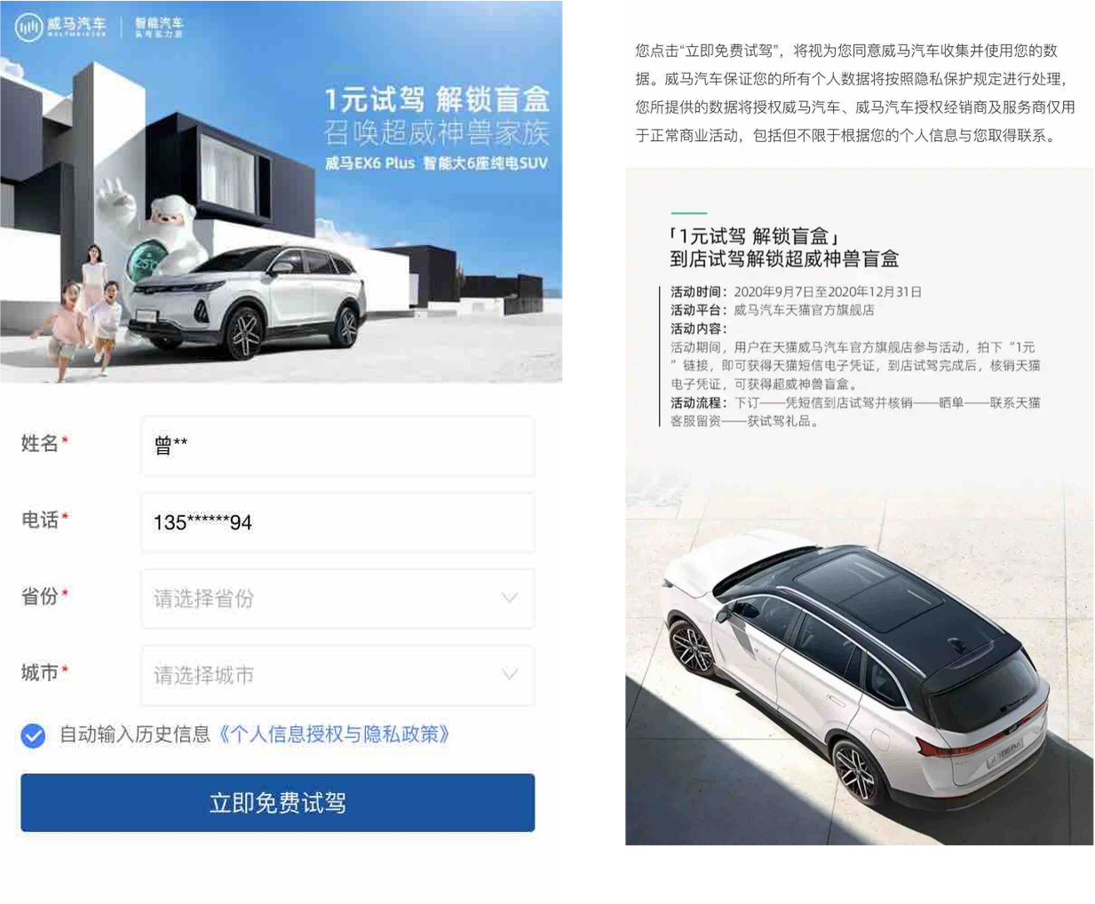 2020年威马汽车在基木鱼平台上共制作基木鱼页面50+个,基木鱼小程序1个,并且应用于投放运营中。